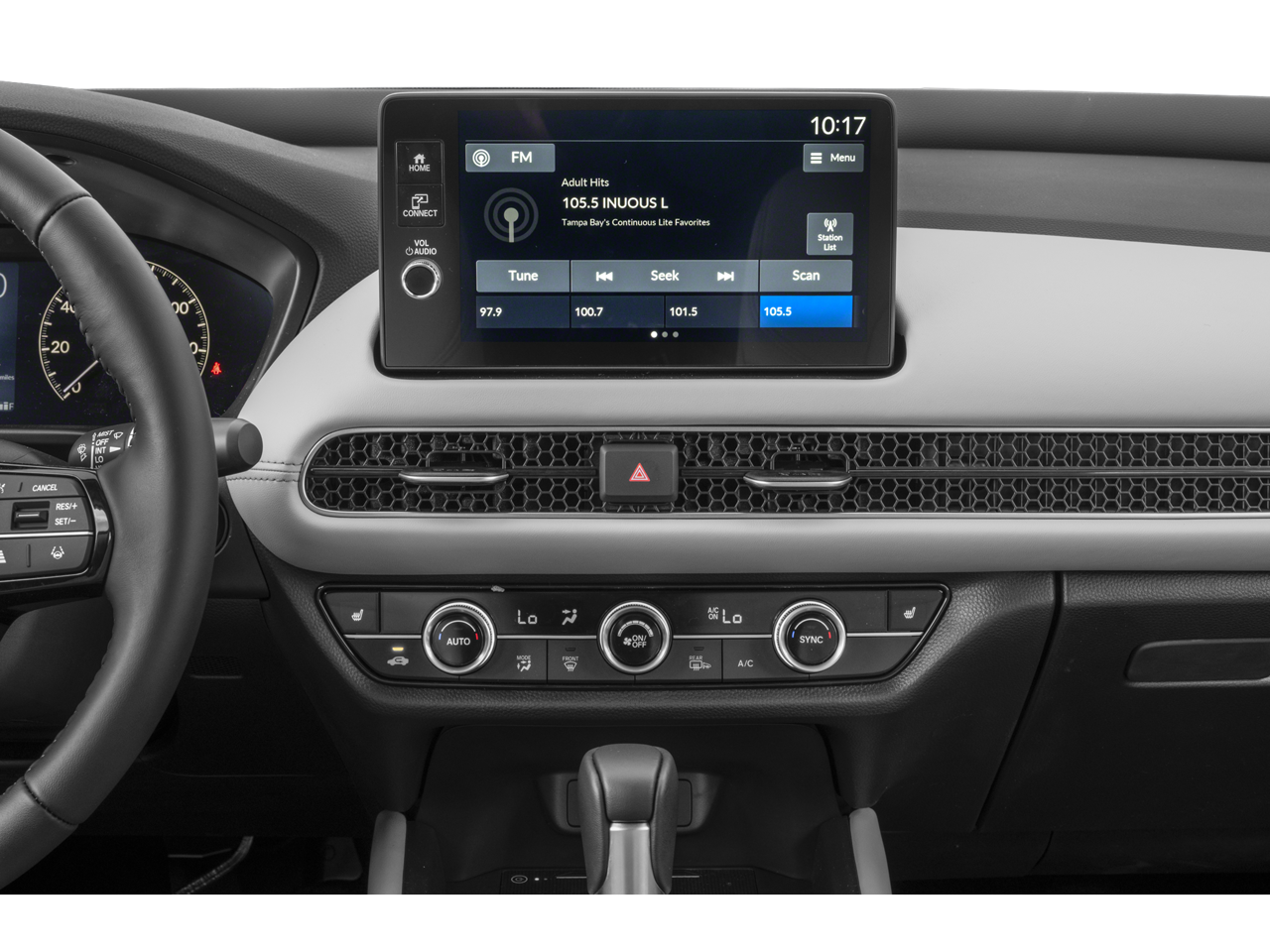 - Radio: 180-Watt Audio System w/8 Speakers -inc: 9" color touchscreen, wireless Apple CarPlay and Android Auto compatibility, Bluetooth® HandsFreeLink and streaming audio, 3.0A USB-C data/charging port in front console, Qi wireless phone charger, HondaLink (select HondaLink features are complimentary, Check vehicle compatibility at https://mygarage.Honda.com/s/Hondalink-product-compatibility) and Speed-Sensitive Volume Compensation (SVC)